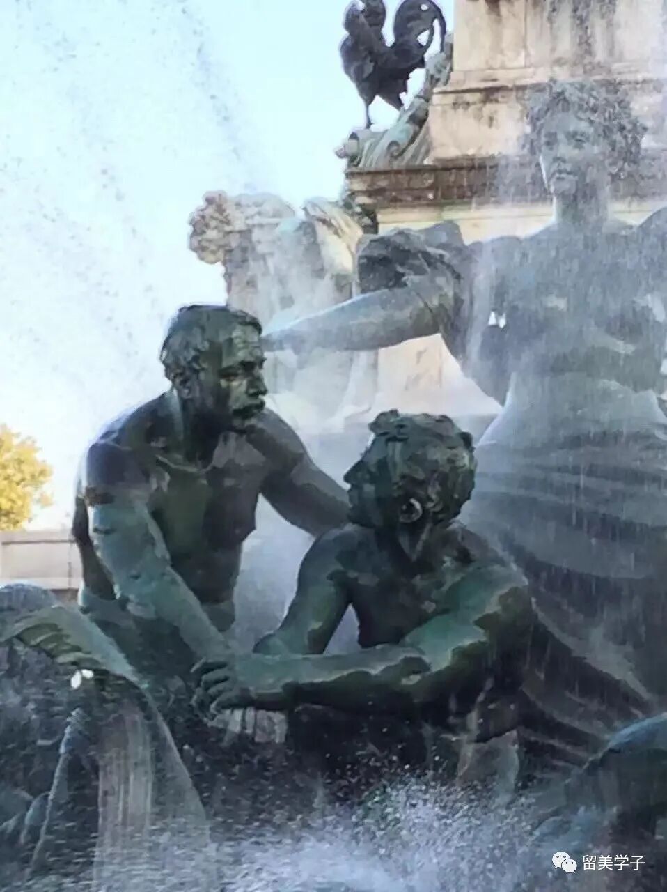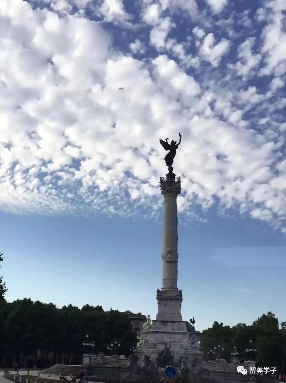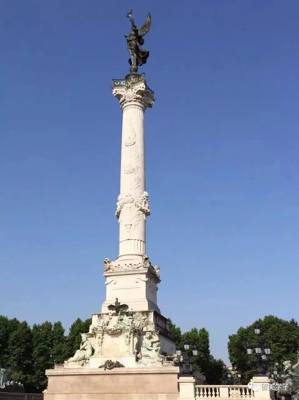 永远不会忘记波尔多~吉伦特派纪念碑在最初几分钟带给我的震撼!在欧洲最美的康孔斯广场上,吉伦特派纪念碑(Monument aux Girondins)高耸入云,它竖立于1894年和1902年之间。54米高的纪念柱顶端是振翅欲翔的胜利女神,她右手拿着砸碎的锁链,左手拿着代表自由的橄榄枝,象征法兰西共和国的胜利。下面是喷泉和四匹马拉着的战车,喷泉下即将走上断头台的勇士们相互握手鼓励。而孟德斯鸠的白色大理石雕像也矗立在广场的另一头。