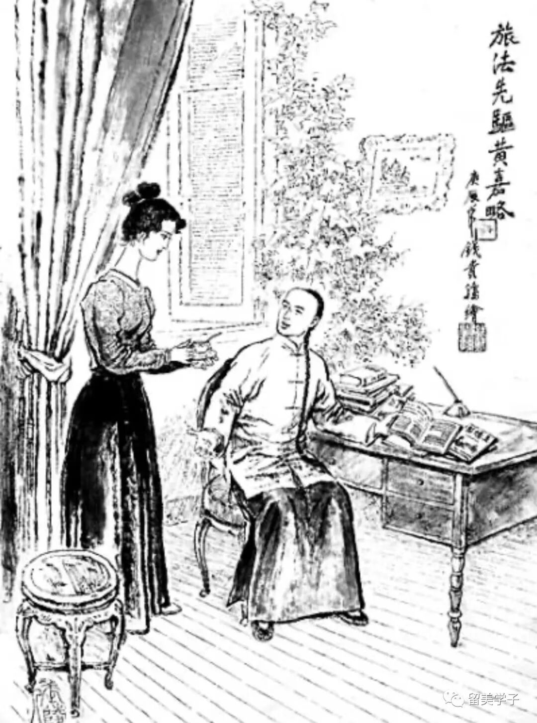 黄嘉略与法国妻子(国画)