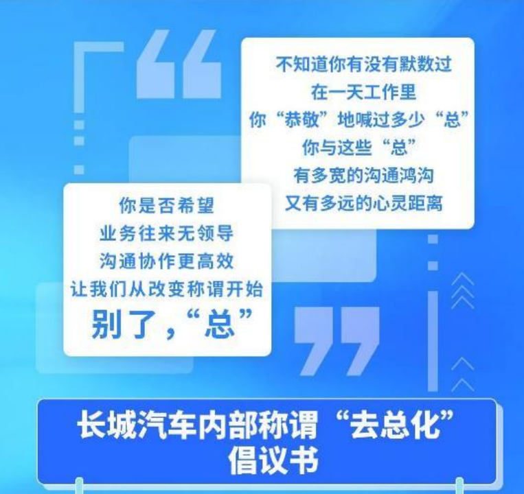 “我们内部叫‘去总化’。以前我们的年轻人见了领导都不敢说话。实际上我给内部说,你们不愿意叫我董事长叫我军哥也可以。‘去总化’,大家都在一个环境下,可以发表自己的各种观点。”魏建军说。