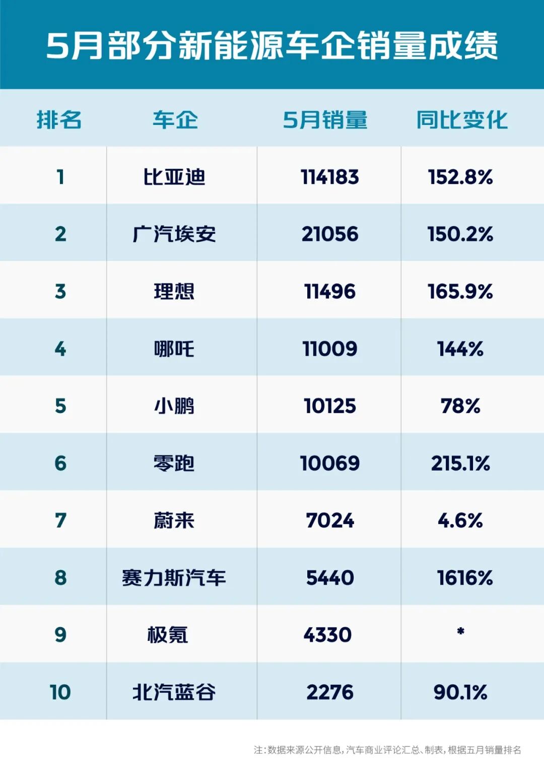 “多强”则指的是以奇瑞集团与广汽集团为代表的传统车企和造车新势力。数据显示,今年5月,除比亚迪以外,厂商批发销量(新能源部分)突破万辆的企业有12家,占新能源乘用车总量80%。