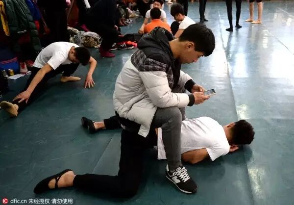 考生们都会拿出看家本领展示自己的舞蹈功底,做着各种高难度技巧动作。