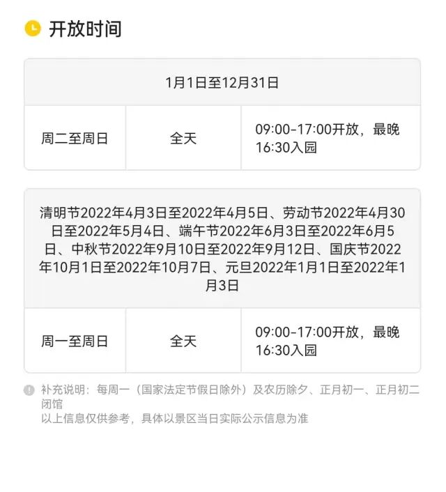 入园规定:刷“预约码”入园,对所有入园游客进行扫码测温,查验72小时内核酸检测阴性证明。