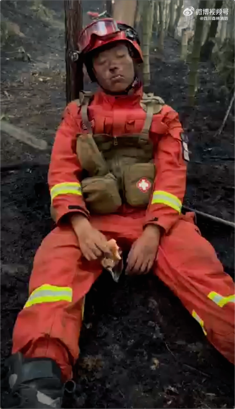 灭火间隙,他们的睡姿看着心疼