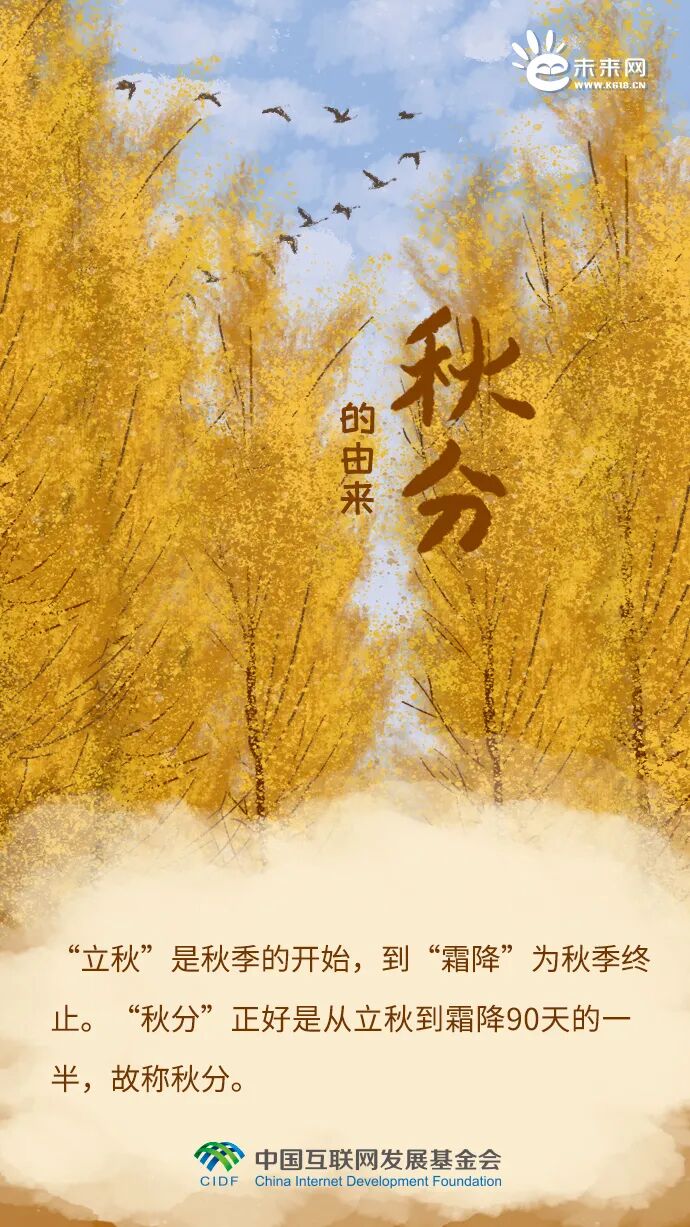 在秋分这一天,太阳几乎直射赤道,各地昼夜等长。按照中国传统的农历二十四节气,秋分意味着真正进入秋季,因此北半球天气转凉,大雁开始成群结队地从逐渐寒冷的北方飞往南方。