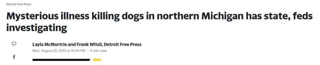 在过去两个月里,这种不明的神秘病毒已经导致密歇根州北部数十只狗死亡。(来源:《纽约邮报》)