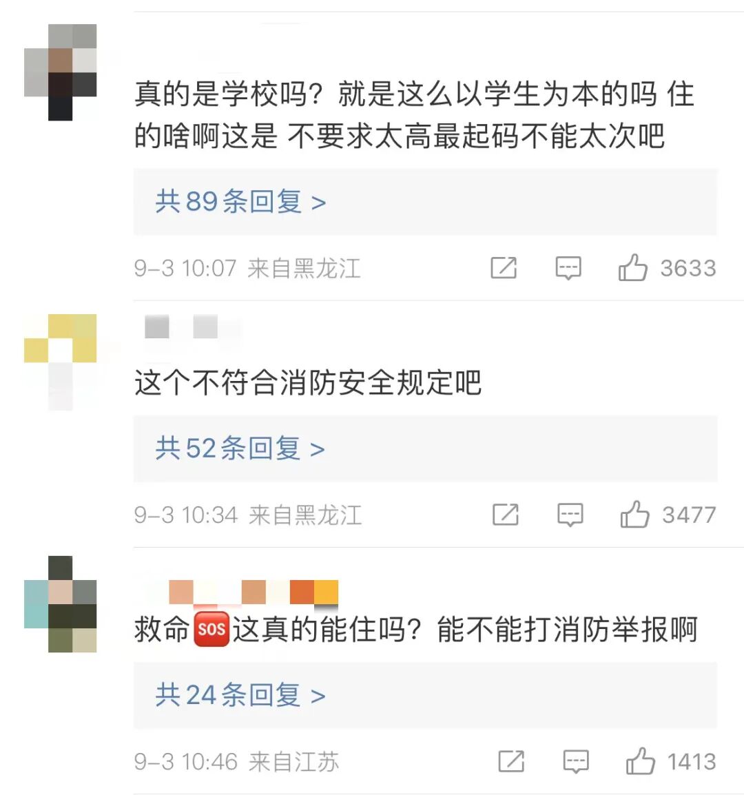 还有家长反映,宿舍门上玻璃还没有安装完,床架子上的油漆还没有干透、还粘手,80个人的宿舍,厕所蹲坑只有17个……