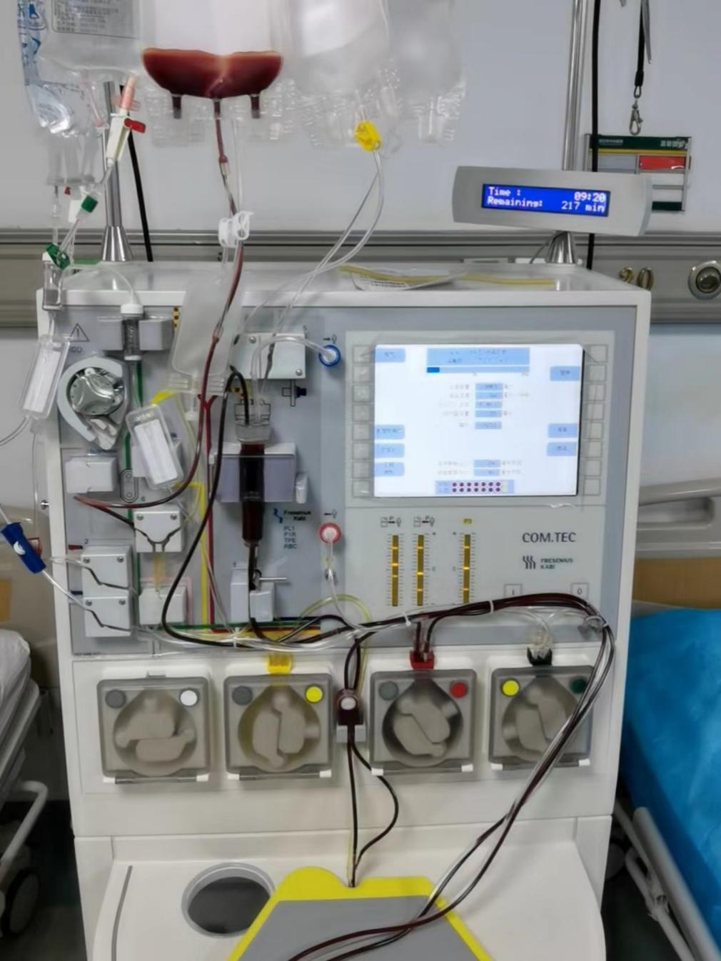 造血干细胞的采集过程持续了3个多小时,最终一共采集了180毫升造血干细胞混悬液。几个小时后,这些生命的种子传递给了一名4岁男童。