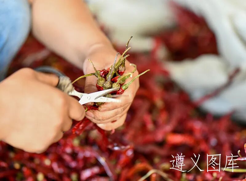 8月27日,村民在贵州省遵义市新蒲新区虾子镇中国辣椒城剪把区工作。