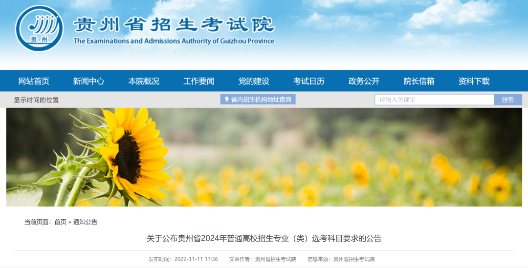 此次公布的招生专业(类)选考科目要求从2024年高考招生开始适用,供2021年以后进入高中一年级的普通高中学生选科参考。因高校的院系及专业(类)调整等原因,实际招生高校和招生专业(类)可能会调整变化,各高校实际招生的专业(类)及计划安排以2024年实际公布的招生章程和招生计划为准,贵州省招生考试院届时将及时予以公布。