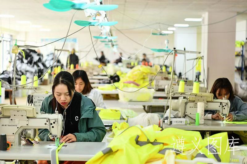 ▲11月7日,工人在绥阳县风华镇虹桥社区“就业车间”服装生产线上工作。