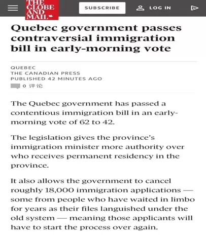 这次,让加拿大举世瞩目的是素来对移民持开放姿态的魁北克省移民局。