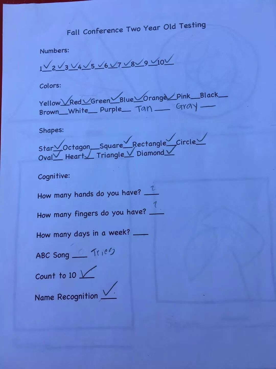 “Dustin真的很优秀,他能识别大部分颜色。他对动作的理解也是到位的。跑,跳,单腿站立,拍球都没问题……,你们有什么问题吗?”