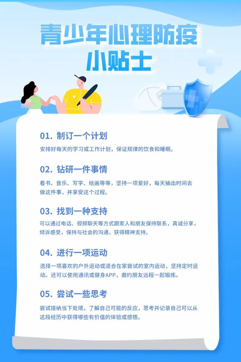 对广大青少年来说,抗击疫情除了遵守疫情防控的各项规定、做好日常防护,心理防护也很重要。
