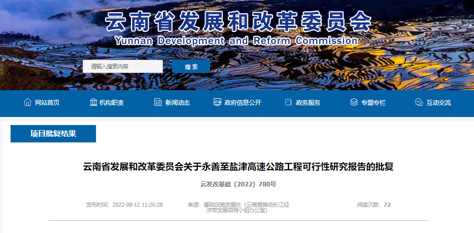 项目主线长83.331公里,其中沿用G85银昆高速公路3.82公里,沿用昭通至乐山高速公路青龙咀至水田新区段11.2公里,新建68.311公里。线路起于永善县城南,接G4216宜宾新市至攀枝花段高速公路雷波卡哈洛至永善连接线止点,止于盐津县牛寨乡河口村(云南与四川交界处),接规划建设的四川筠连至叙永高速公路。主线按双向四车道高速公路标准建设,设计速度80公里/小时,路基宽度25.5米。桥涵设计汽车荷载等级采用公路—Ⅰ级,其他技术指标按《公路工程技术标准》(JTG B01–2014)执行。