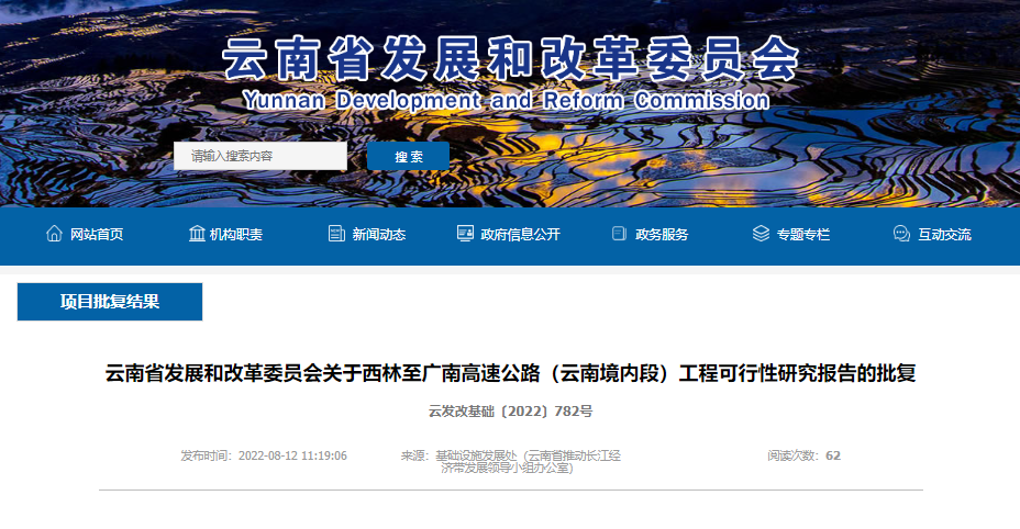 项目主线长40.223公里,起于广西壮族自治区与云南省交界处广南县坝美镇北侧老肖村,顺接拟建黔西南至西林高速公路建设项目止点,止于广南县城莲城镇者况村,通过者况枢纽互通连接在建泸西至丘北至广南至富宁高速公路冷水沟支线止点。主线按双向四车道高速公路标准建设,设计速度100公里/小时,路基宽度26米,汽车荷载等级采用公路—Ⅰ级,其他技术指标按照《公路工程技术标准》(JTG B01–2014)执行。
