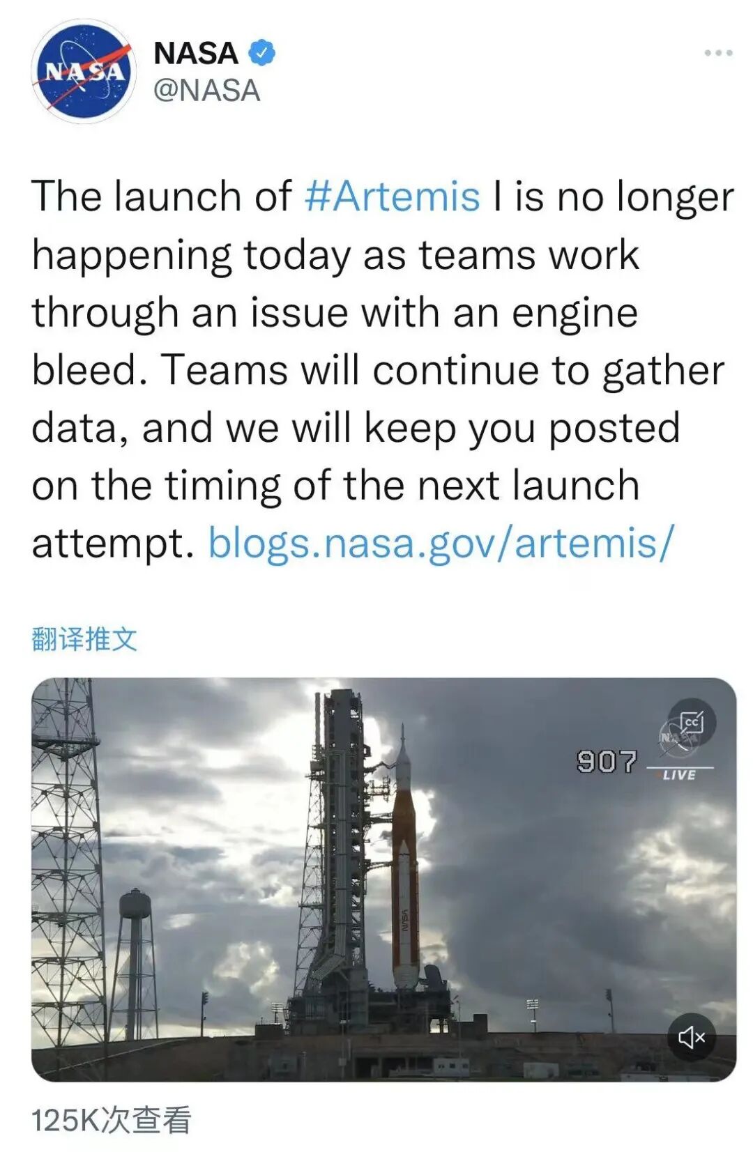 美国国家航空航天局表示,目前火箭仍然稳定,燃料几乎处于充满状态,但火箭的一个引擎排气(engine bleed)出现问题,导致引擎无法达到适宜发射的温度范围,由于来不及在两小时的发射窗口内修复该故障,所以叫停了此次发射。据悉,该火箭此前并未发生过类似问题。美国国家航空航天局原计划当天发射新一代“太空发射系统”(SLS)火箭,并将其运载的“猎户座”飞船送往月球,以执行“阿尔忒弥斯1号”无人绕月飞行测试任务。据悉,美国新一代登月火箭已多次推迟发射。发射团队将在未来数日决定发射时间,下一个发射窗口期最早为9月2日12时48分。