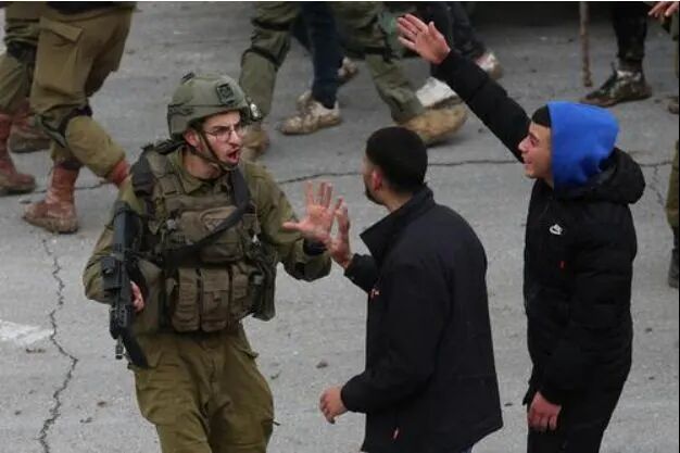 2021年12月17日,巴勒斯坦抗议者在约旦河西岸城市纳布卢斯北部的一座村庄与以色列士兵对峙。