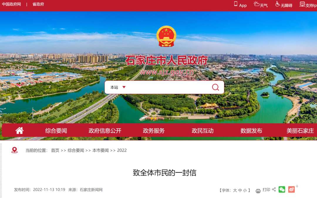 石家庄市人民政府网站截图