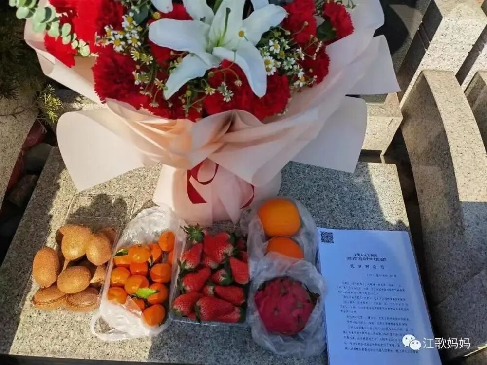 江秋莲在江歌墓前读判决书(图片来源:江秋莲个人微信公众号)