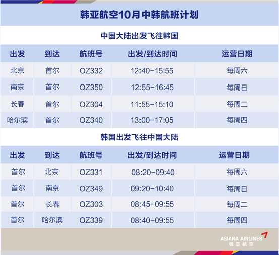 *MF871/2“厦门=首尔”周四仅执行10月6日;*MF895/6“厦门=金边”每周日拟执行10月9日、23日;*MF820“马尼拉-厦门”每周五拟执行10月7日、14日、28日;*MF834“曼谷-厦门”周一仅执行10月10日。注:以上航班均为当地时间,如遇航班变动,请以实际查询为准。![]()