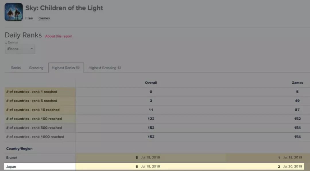 《光·遇》在日区App Store曾闯入免费榜 Top 2