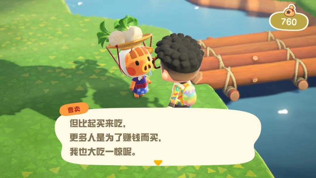 《动森》有一个设定,吃下食物之后,角色可以敲碎岩石、连根挖起树木,以此整顿自己的岛屿。只要大头菜的价格低于100元,它就是最便宜的食物,吃它远比吃下其他昂贵的水果合算。