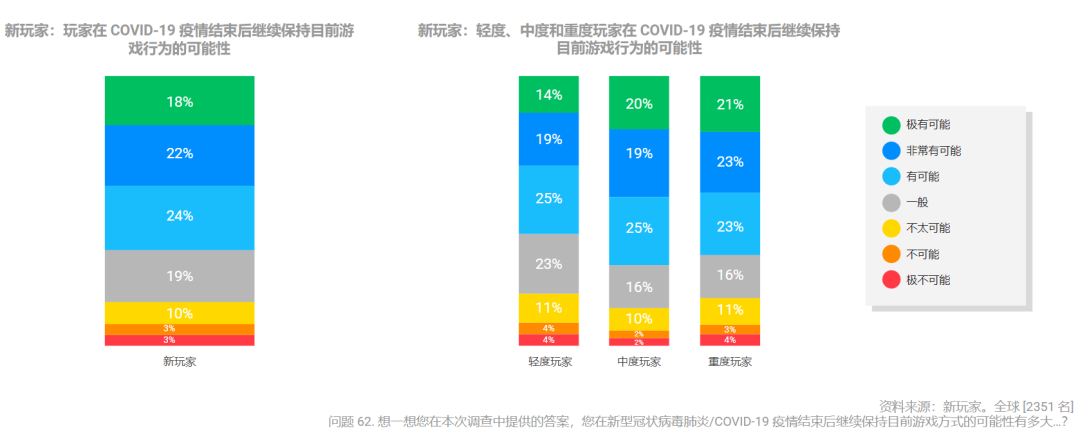 其次,也会有许多轻量级玩家进化至中重度,持续投入更多时间、消费——《报告》显示,全球 40% 的玩家表示,他们会保持疫情期间养成的习惯。
