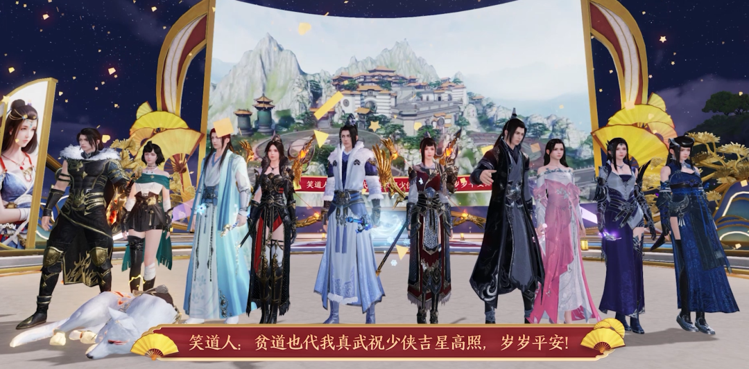 此外,对于玩家而言,情感链接最深的还是NPC。为了表达新年的辞旧迎新,团队找来了好几个声优,以NPC的形象登台献唱,表达八荒前辈的祝福。