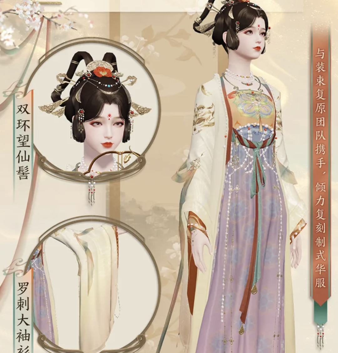 为了还原唐宋时期的服饰,天刀又找到了中国装束复原小组。一开始考虑到春晚,美术原画设计的都是红色服装,装束复原小组看到后,坚持改为明黄色,并且发型、服饰、披帛每个设计,都要保证有原型考究。