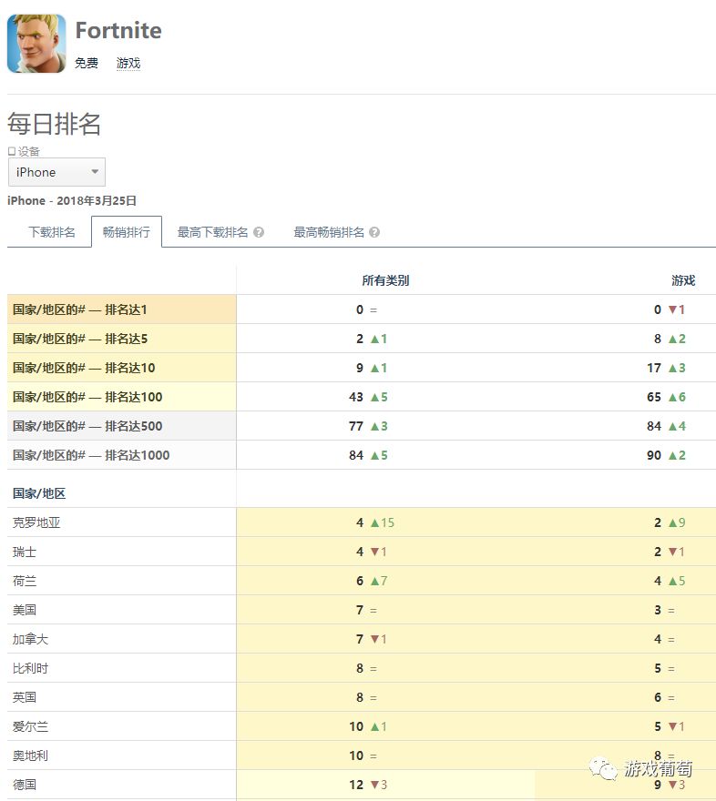 前不久《堡垒之夜》在3月16日推出了移植版手游后,迅速在美国及其他100多国的iOS免费榜登顶。《PUBG》紧随其后,并很快取代了《堡垒之夜》的地位,将其挤到了第2位,同时也在美国等100多国免费榜登顶。