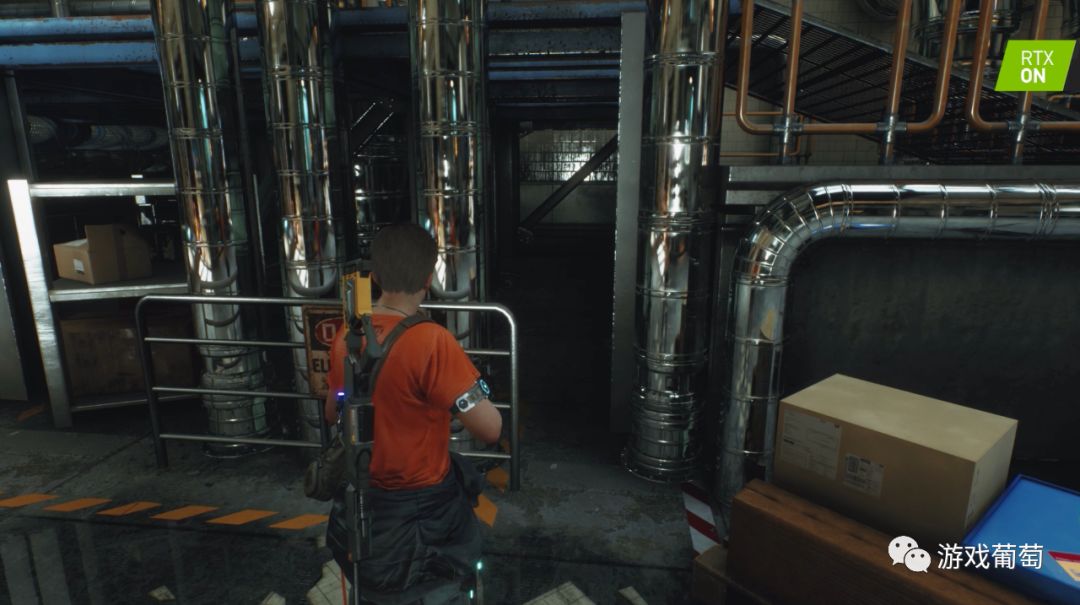 下面这两张的对比更加明显:开启光线追踪后,钢管的反射的效果对比清晰可见。