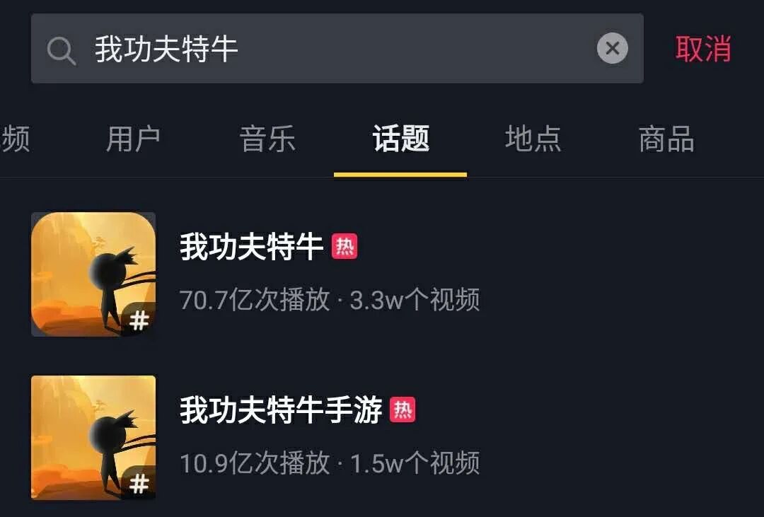 按照常理来说,超休闲游戏的推广无非就是买量,但《我功夫特牛》不只如此。在抖音上,#我功夫特牛#话题的播放量超过70亿,#我功夫特牛手游#话题的播放量也达到了10.9亿。