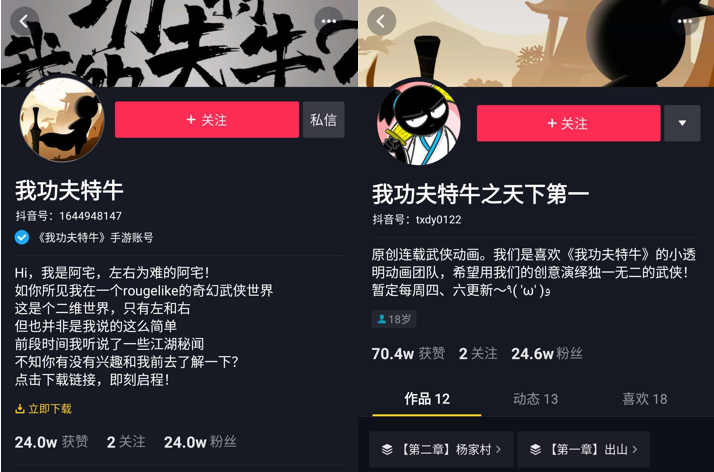 而在用户泛化之后,Ohayoo又发现许多核心用户对功夫背后的江湖世界更加好奇。于是他们在抖音上与其他动漫IP联动,甚至还尝试通过衍生动画,拓展游戏原本极为简单的世界观和人物设定。类似的品牌营销对超休闲游戏来说非常罕见。