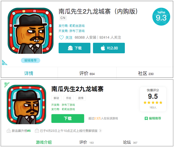 五年前,初入游戏圈不久的胖布丁,凭借《南瓜先生大冒险》崭露头角。时隔五年,首个代表作的续集终于登陆移动端。它依然是个以场景来叙事的作品,独特画风与扎实的解谜玩法则是其卖点。落到口碑上,本作评分也是居高不下。