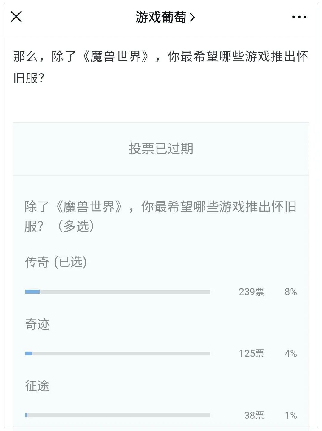 近年来,游戏圈内掀起了关于怀旧的讨论。在去年「十一」期间,葡萄君也曾发起过一个话题:「除了《魔兽世界》,你最希望哪些老游戏推出怀旧服?」