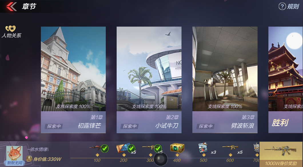 可解锁不同故事的好感度及多支线多结局应该说是文字冒险游戏中的标配了。以往的该类游戏中,好感度往往只与你的对话选择有关,玩家的选择有了衡量的意义,也促使玩家更用心的去观察人物。在CF手游,我们将部分好感度与游戏对局胜利与否而挂钩,本质上是将玩家习惯的游戏行为进行了奖励放大,给胜利赋予更多情感包装,让玩家真的产生凭借一己之力改变了小姐姐人生的感觉,既能推进剧情,又不太跳脱以往的核心玩法。