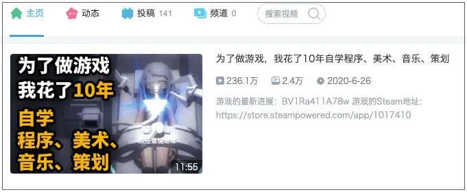 看起来,游戏开发者兼做自媒体,获益颇多。但老 A 却告诉葡萄君,这是一条困难路线,尤其对于白手起家的人来说,更不要花大量时间去做自媒体,而是应该专注于作品。他之所以能走通这条路,有运气因素,有幸存者偏差。