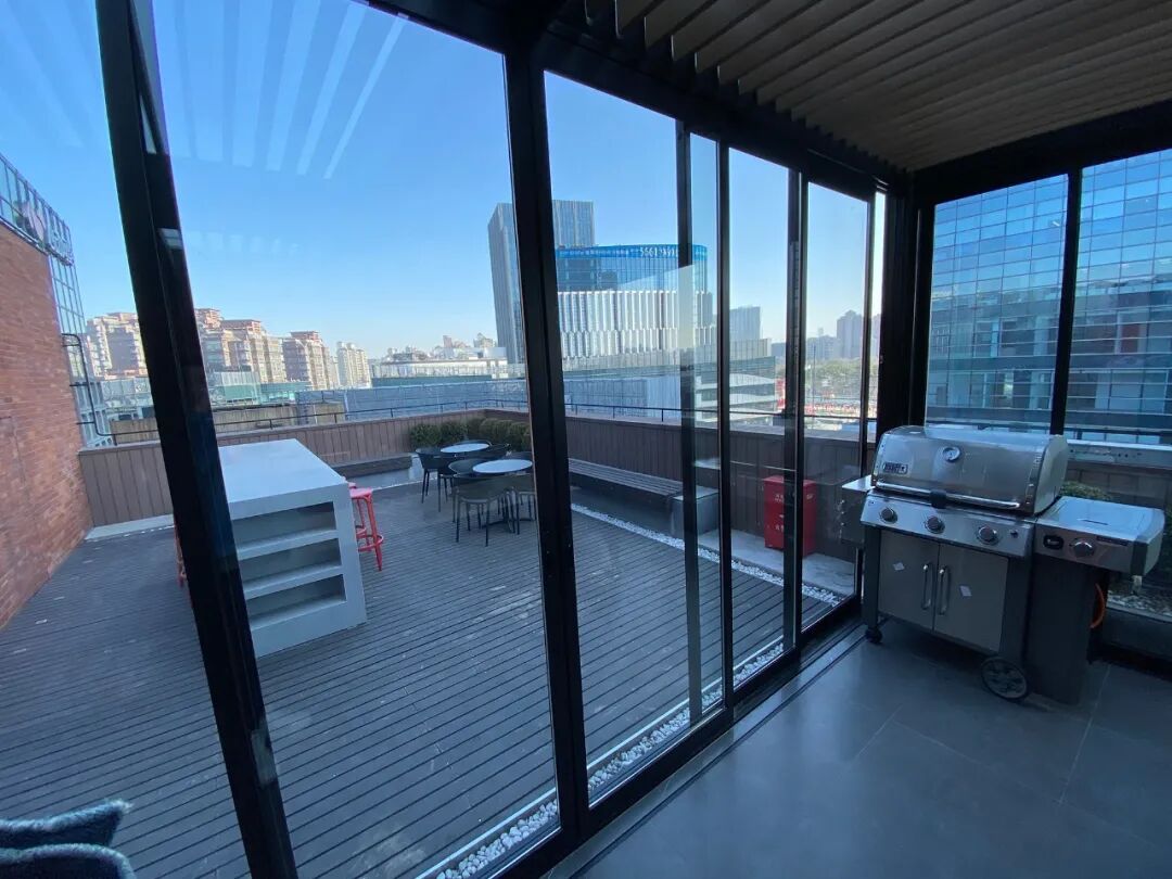 对心动CEO黄一孟和合伙人戴云杰的采访被安排在心动A1顶楼的露台。那天上海的气温在10摄氏度左右,但在玻璃屋子内部,一座竖式的壁炉燃起了长长的火舌,旁边还有一个没有启动的烤肉炉,这一切让房间显得暖洋洋的。