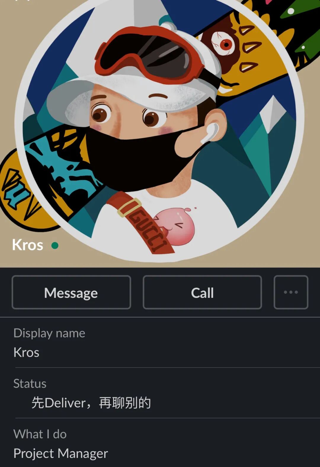 可能是为了表示决心,在Slack上,戴云杰用「Project Manager(项目经理)」描述自己,并把「先Deliver(交付),再聊别的」设置成了签名。他向我解释:"Dash唱红脸,我就得唱白脸,要把公司的底线兜住。"