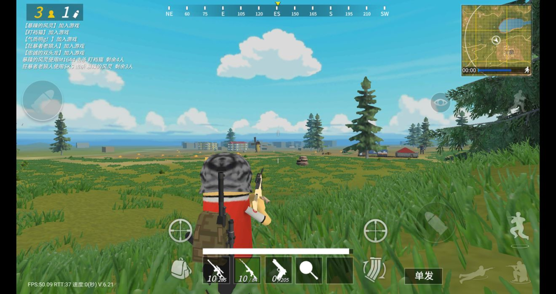但问题也随之而来——在移动端做这种强度,真是太难为玩家了。没有受击方向提示、没有自动捡拾,也没有AI陪玩……你可能很难想象,这个看起来最清新的吃鸡游戏,在当时却是同类里操作最硬核的一款产品。达达说,当时的环境相当于“把小白玩家直接丢到了一个残酷的战场里”。