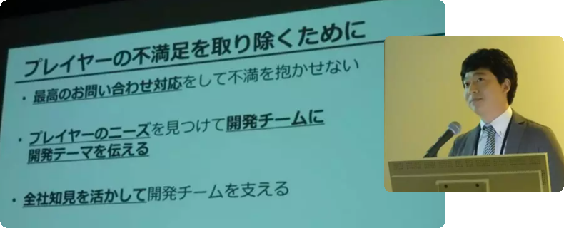 Cygames客户支持部副经理副岛达矢曾提到「我们为了不让玩家产生不满,采用支援开发团队的体制。通过部门内的频繁对接,来推动项目基于用户侧的改善。」而公司董事木村唯人也表示,参与游戏开发的人员,会直接参与到游戏的运营当中,从一线了解玩家的需求。