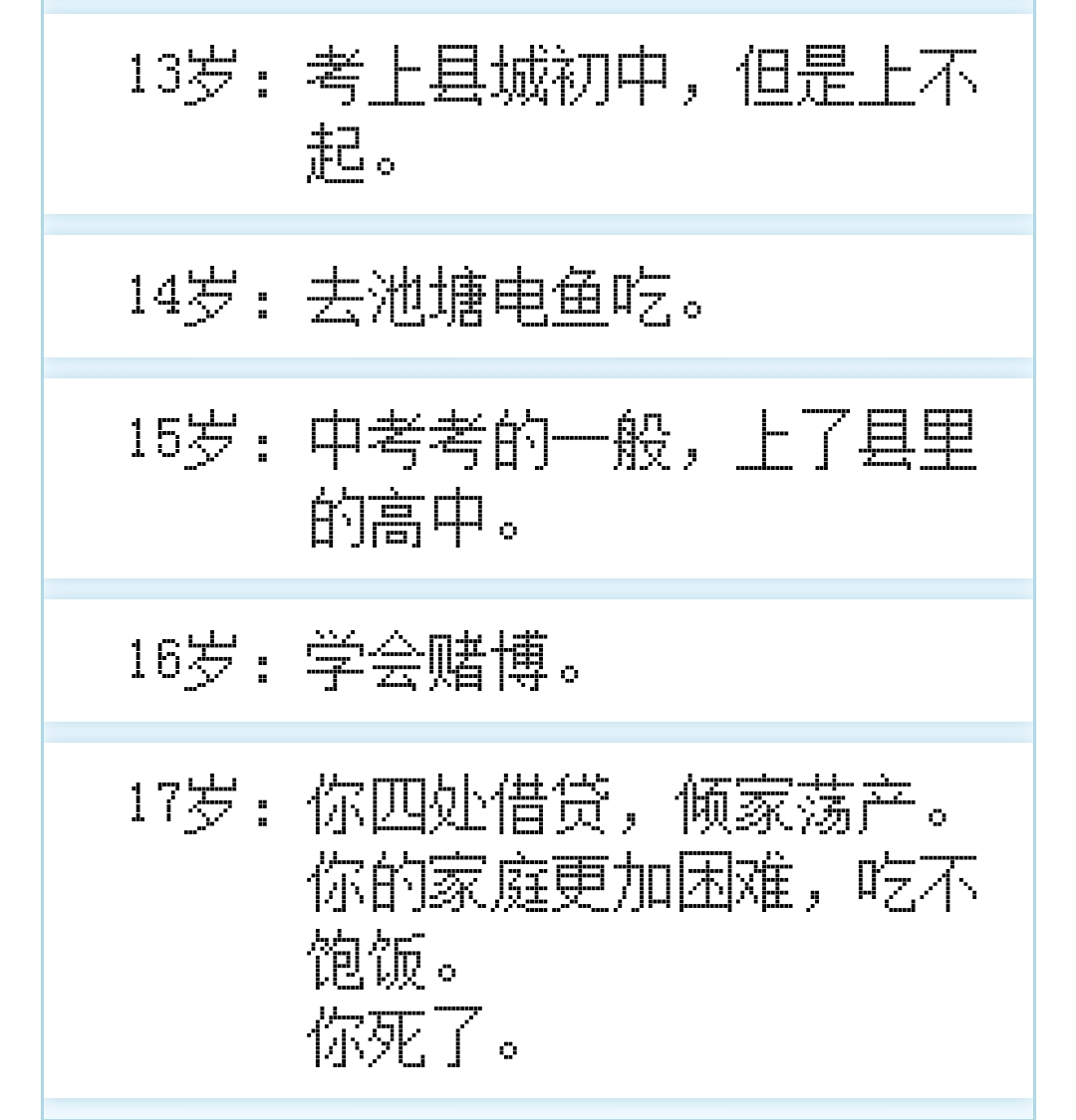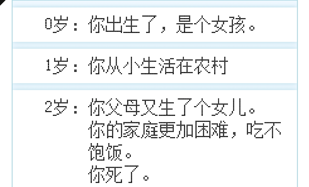 这个游戏的设计,拆解起来也并不复杂,但其中却包含了不少精巧的构思。比如玩家所遇到的事件,会在年龄的不同轮次产生联系,让经历看起来更加合理和完整。