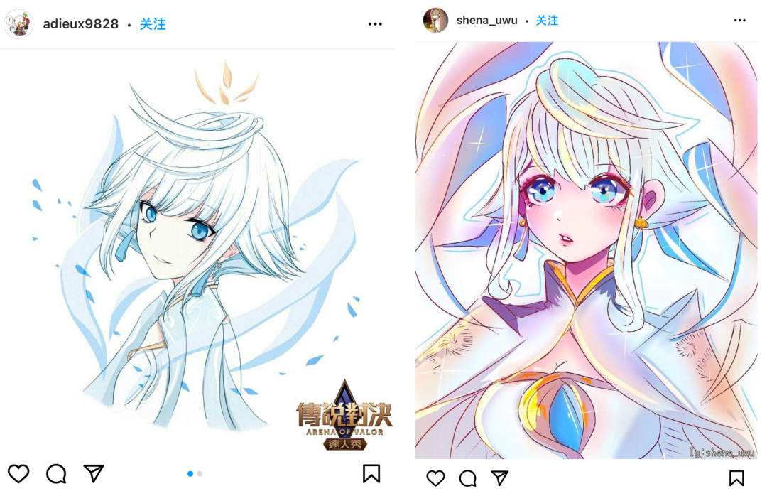 一时间,大量玩家都表现出了对这款首次在全球同步推出的双生皮肤的好感。他们不仅愿意购买,更愿意分享,甚至有的玩家基于新皮肤展开了自己的创作,其中不乏一些高质量的CosPlay和同人画。
