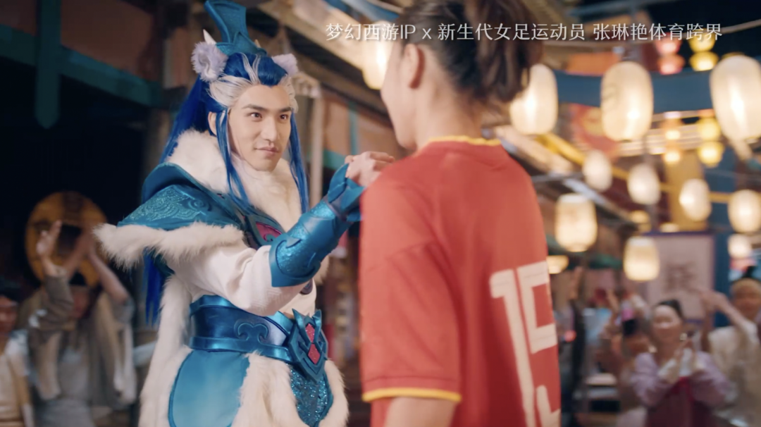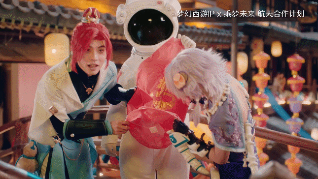 第四个则是品牌开始参与社会议题。这一动作分别覆盖体育与科技两个层面:其一是「梦幻西游」与新生代女足运动员张琳艳的跨界合作,宣传足球文化与女足精神;其二是与航天合作的计划,将中国航天航空与游戏品牌相结合,推出「乘梦未来」企划。