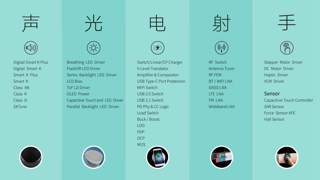 声产品线,从早期AB类、D类到独立创立架构的K类,从Smart K到全自主开发的艾为神仙算法awinicSKTune®,艾为人持续突破创新,每年为3亿台设备带来“声”临其境的音效体验;K类功放更是全球唯一一款由中国人命名并获得国际认可的音频功放系列产品,并荣获上海市科学技术奖(戳此回顾:【新闻】艾为电子K类音频功放获2020年度上海市科学技术奖授奖)。