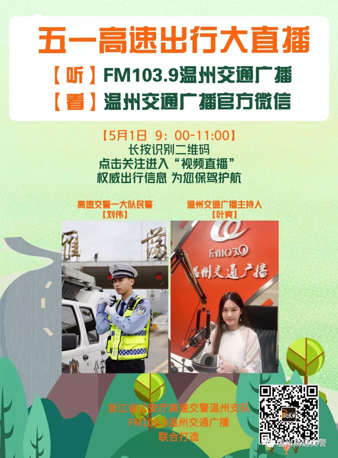 温州高速交警阳光小哥哥和温州交通广播优雅小姐姐在5月1日9:00直播等你喔!!