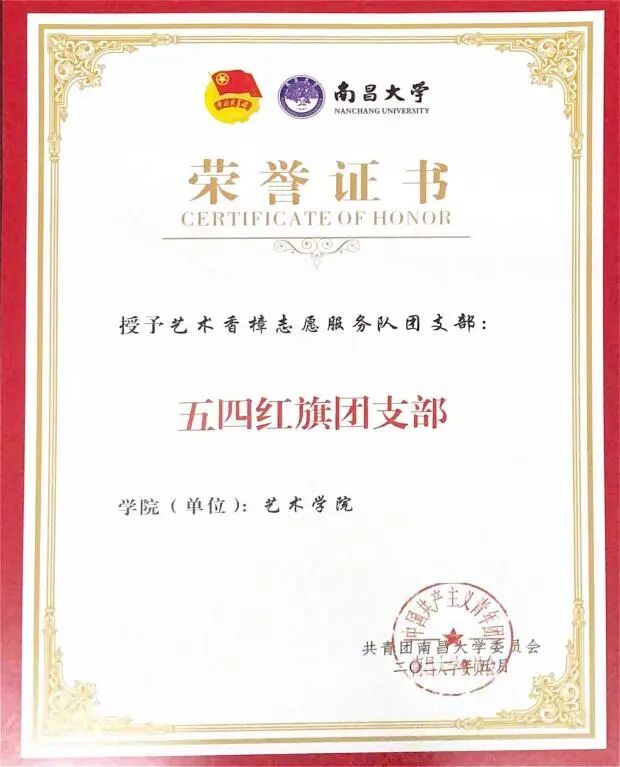 2015年9月,艺术香樟志愿服务队成立,并于2018年3月成立了艺术香樟志愿服务队团支部。