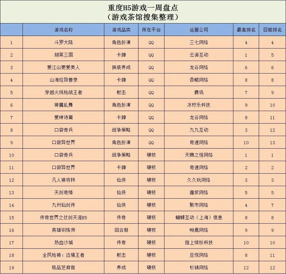 重度H5游戏:《斗罗大陆》重回榜首,《极品芝麻官》排名上升