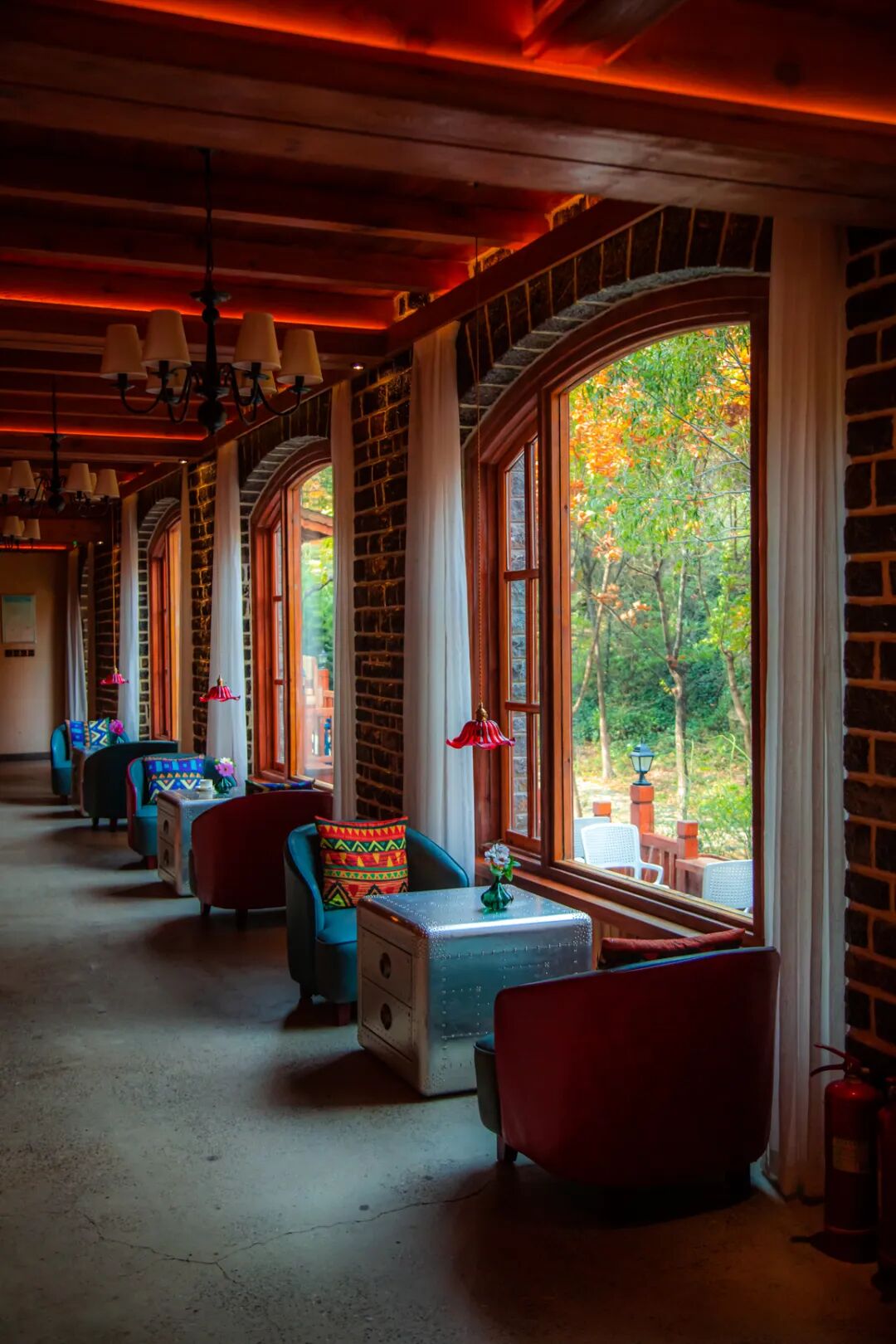 身处房中就可坐拥美景,看群山叠翠、群花争艳,与山水相融,仿佛置身于一幅动态感十足的油墨画中。