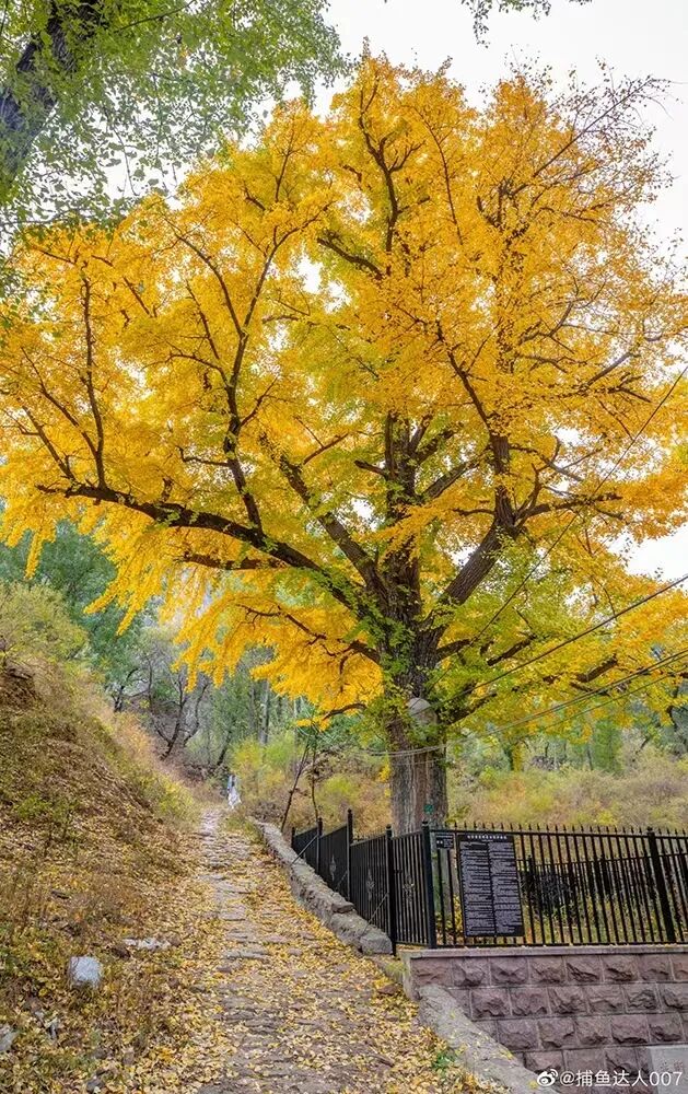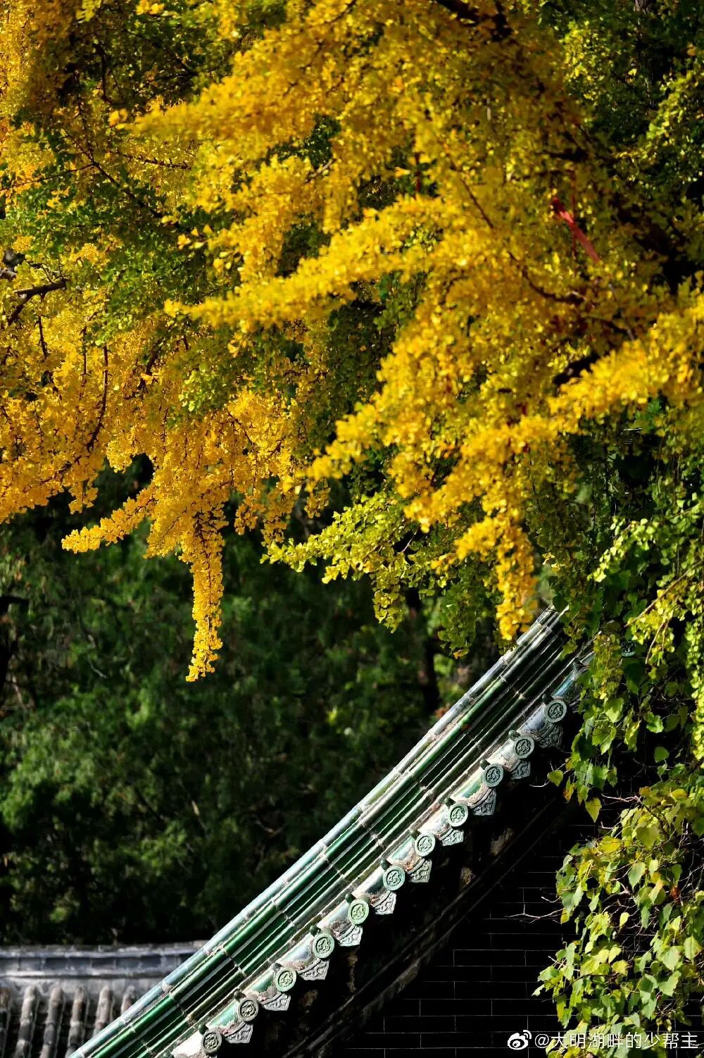 这三棵银杏,把殿前整个月台遮盖起来,天地间只剩下一片金黄。